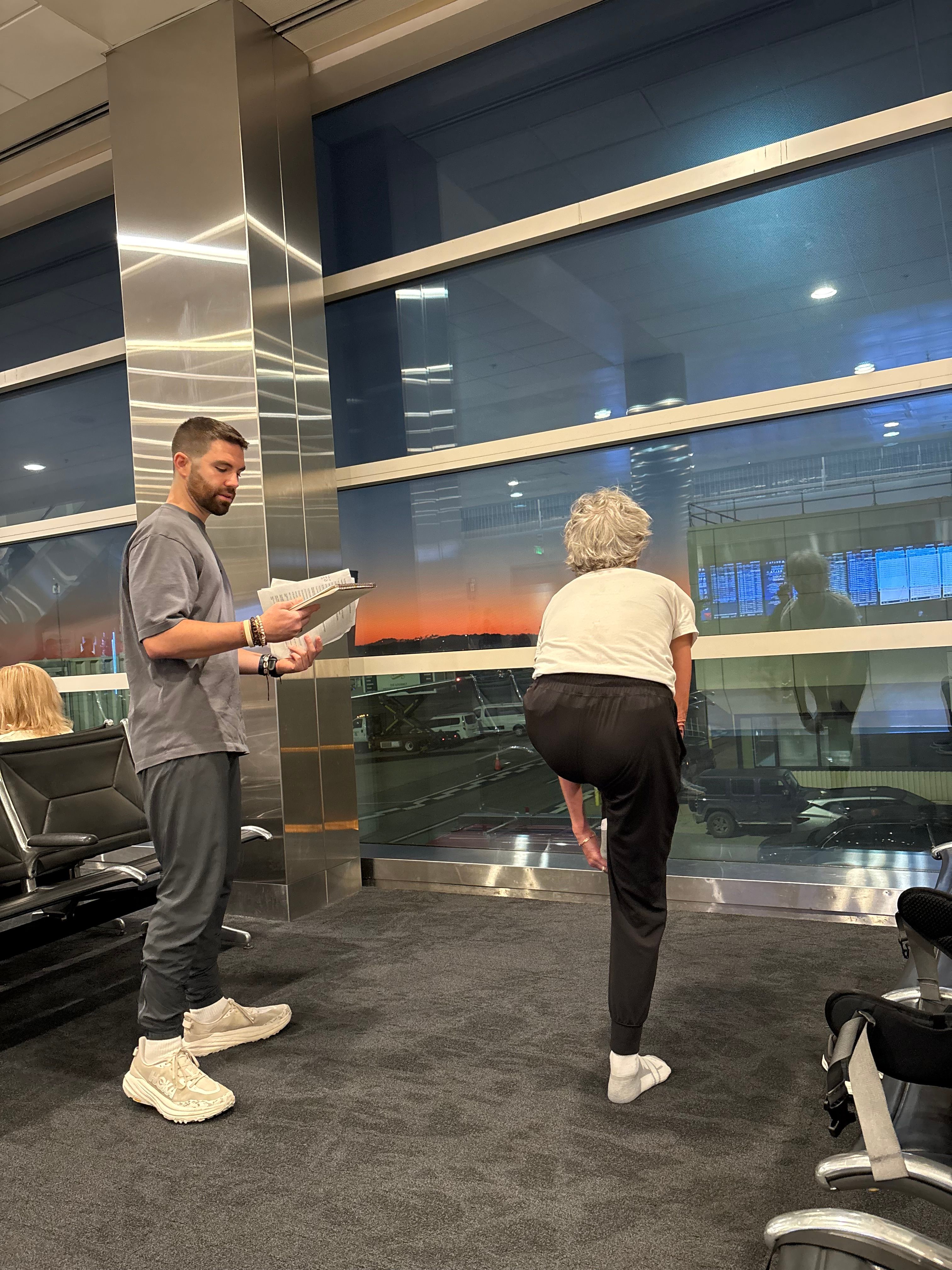 Atlanta airport, 7am layover - practicing Hot 26 (Bikram) with Mom!